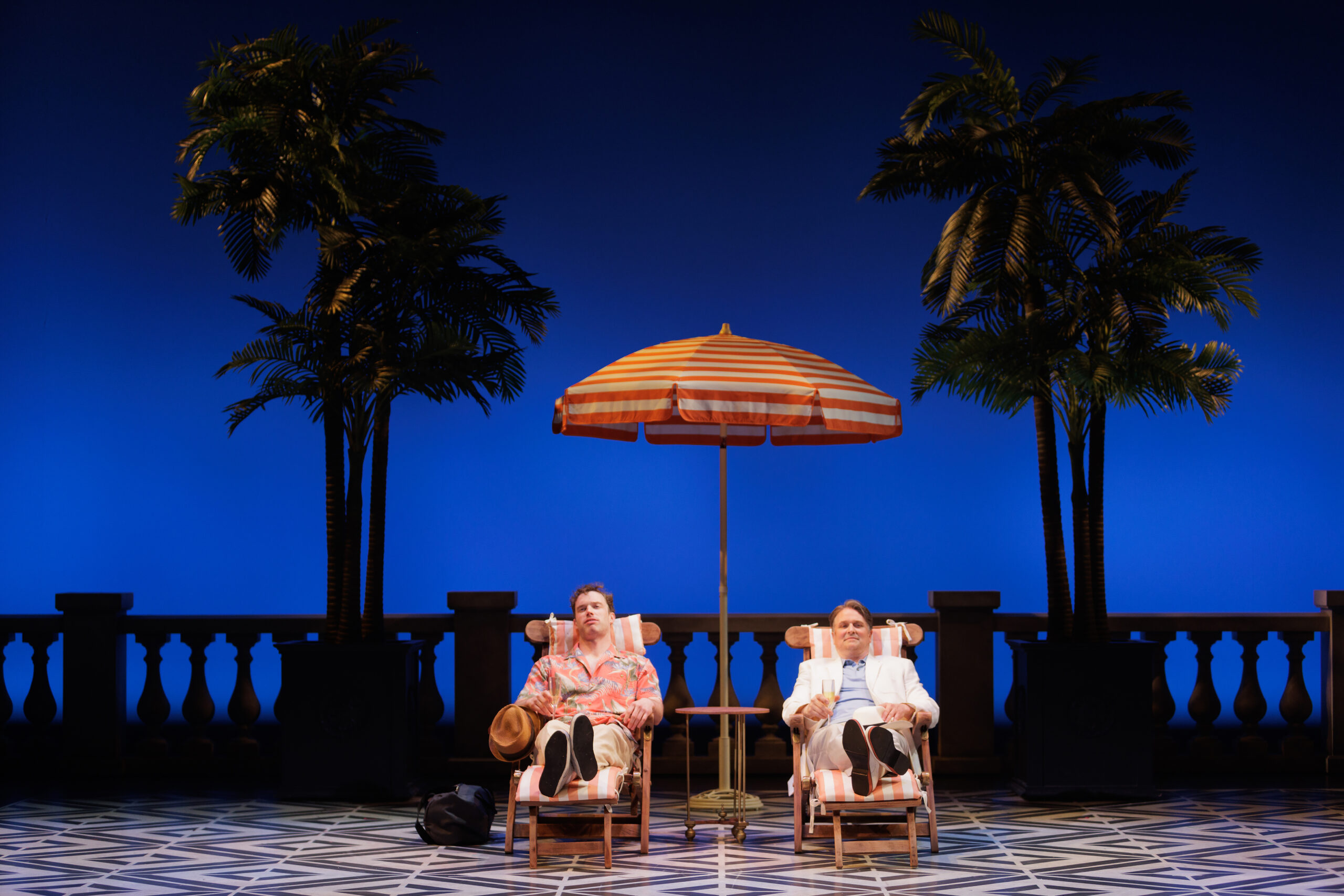 While Goad’s Lawrence is classy, I admire Tobin’s cardiovascular system, as he’s getting quite a workout during the show. (Spoiler alert) How Tobin ends up in a box seat of the house within a matter of seconds is a wondrous sight to behold. His bit in the wheelchair during the second act is a masterclass in musical theatre.