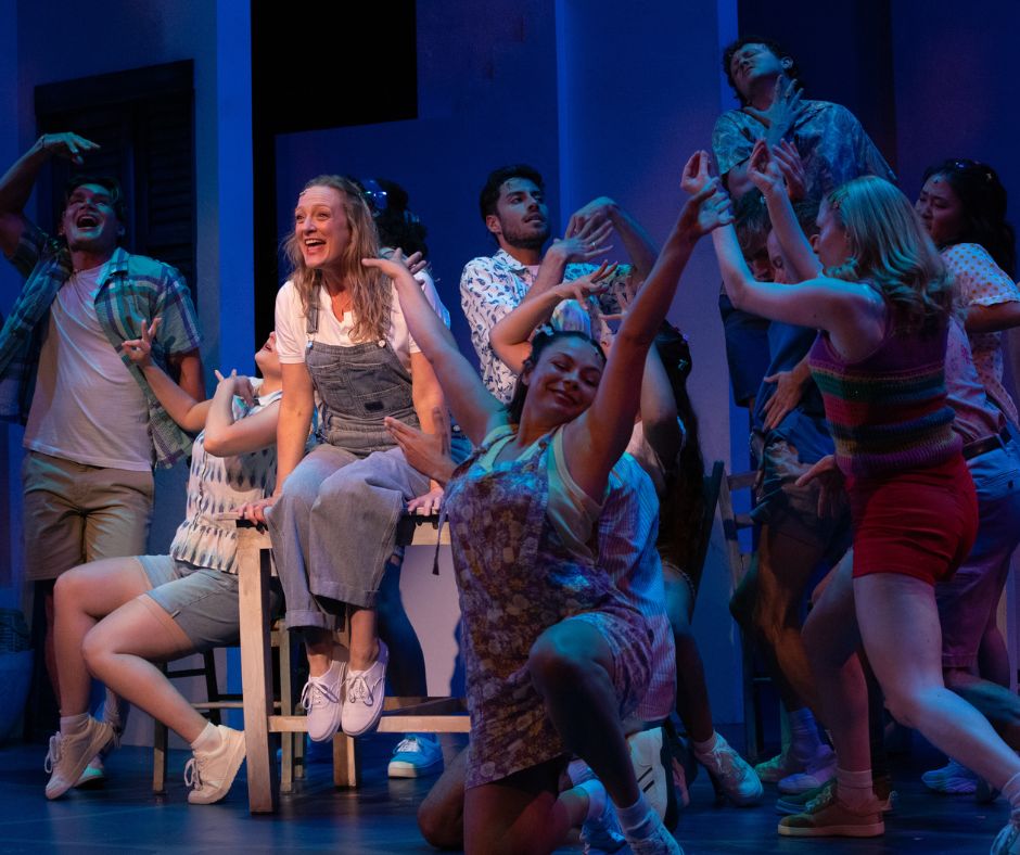 Brandon Kleiman’s terrific set design spans the entire Springer stage. It’s breathtakingly washed in Amber Hood’s sun-kissed lighting designs of aqua blue. Bex Tralli’s pleasant soundscape of waves lapping against the shore with the echo of gulls flying overhead transported me away. Another note of commendation to Tralli – I heard every single lyric of every song this afternoon. The sound balance between the orchestra and the performers is perfect. Julia Kim’s summer clothing designs and choices appropriately create a colourful visual panorama.