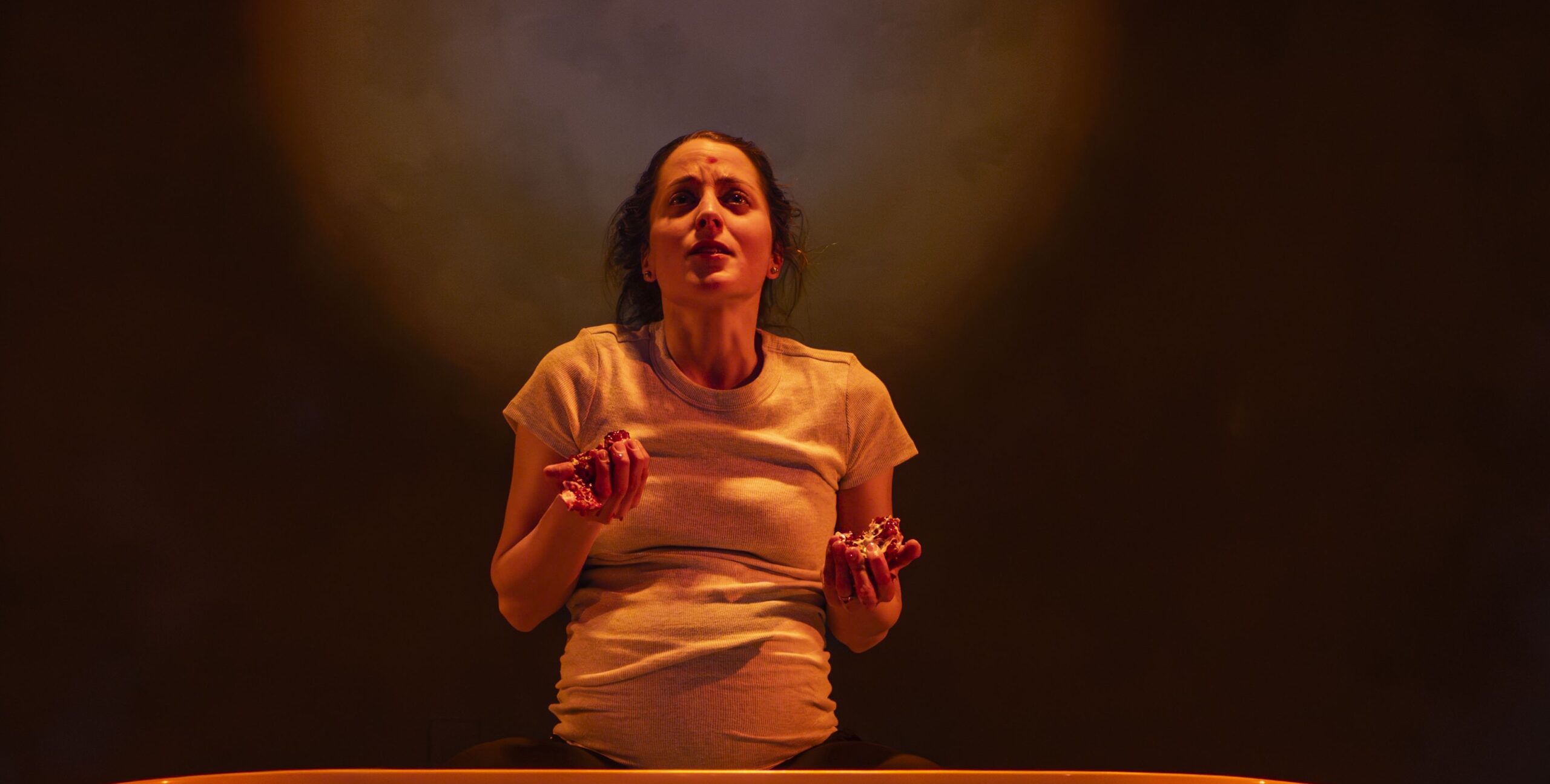 Speaking with uncertainty and a tinge of fear of the unknown, Her wonders how she can bring a child into the world – and teach her daughter to claim who she is – when Her’s connection to her ancestry feels fraught and diminished, reduced to tangled, half-erased threads of her mixed-race Irish and Persian (Iranian) lineage. Janice Jo Lee’s selection of pre-show music, mixing Persian and Western cultures, sharply underscores the concern Her will soon share with the audience.