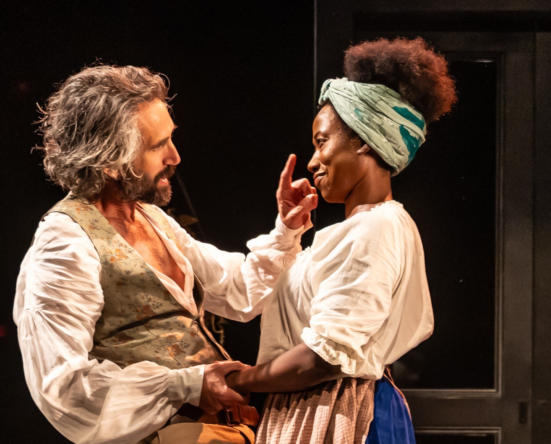 The production is directed with exceptional care and insight by Jordan Lafrennier. If you have the opportunity, I highly recommend reading his account of visiting Southern plantations in the U.S. as part of his preparation for rehearsals. It seems that both Lafrennier and Intimacy Director Anisa Tejpar collaborated closely throughout the process to ensure that respect and dignity were maintained for everyone involved. The creative team behind the production has done a wonderful job creating a visual story that captivates the audience. Notably, Rachel Forbes’ impressive costume designs representing Southern plantations, Daniel Bennett’s evocative lighting, and Gillian Gallows’ stunning mirrored set design all contribute to this immersive experience at the top of the show. Additionally, Thomas Ryder Payne’s sound design enhances the overall atmosphere.